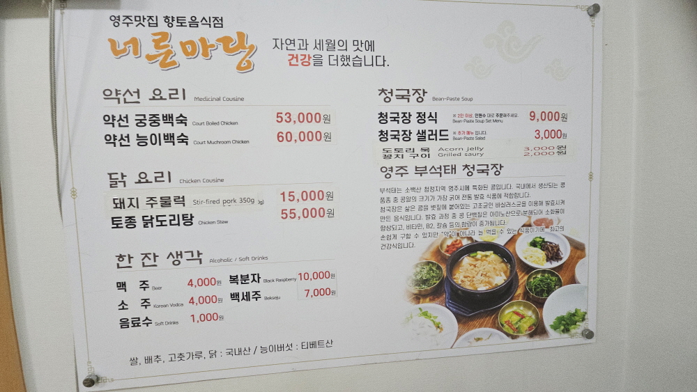 영주 토종닭백숙 청국장 맛집