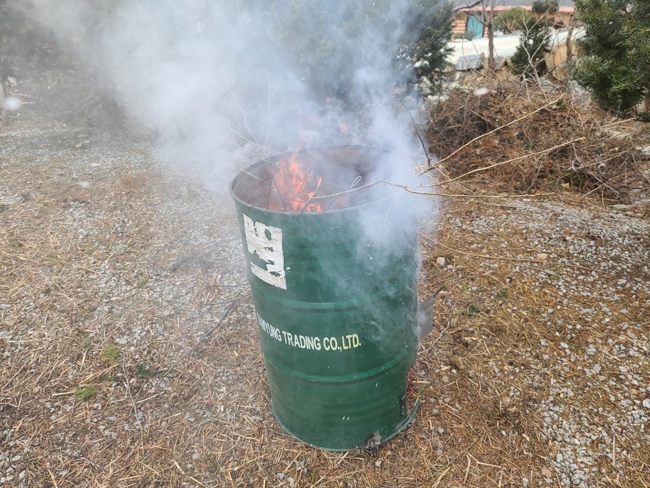 익숙하지 않은 인터넷구매를 했다ㆍ43,810원. 주문 후 며칠 간 연락조차 없고 택배업계 파업 때문인가, 해발 400미터 산골이라 배달이 어려운가 싶어 참고 기다리고 있는 차에 5일만에 갑자기 배달되어 왔다ㆍ귀향 후 3개월 동안 쉴새 없이 땀 흘려 전지하여 모아 놓은 나무가지와 검불더미가 못내 마음에 걸려 소각로를 준비한 것이다ㆍ소백산 거친 바람에도 산불 걱정없이 안전하게 소각하려면 꼭 필요한 장비이다ㆍ 1시간 이상 고열에 과열하면 모양이 쭈그러들 수 있으니 주의하란다ㆍ호롱마을 방문객들에게 깔끔한 모습을 보여주고 싶기도 하다ㆍ