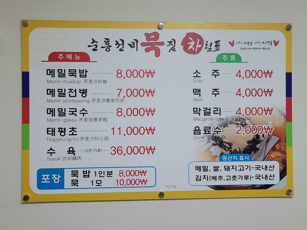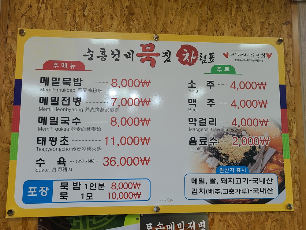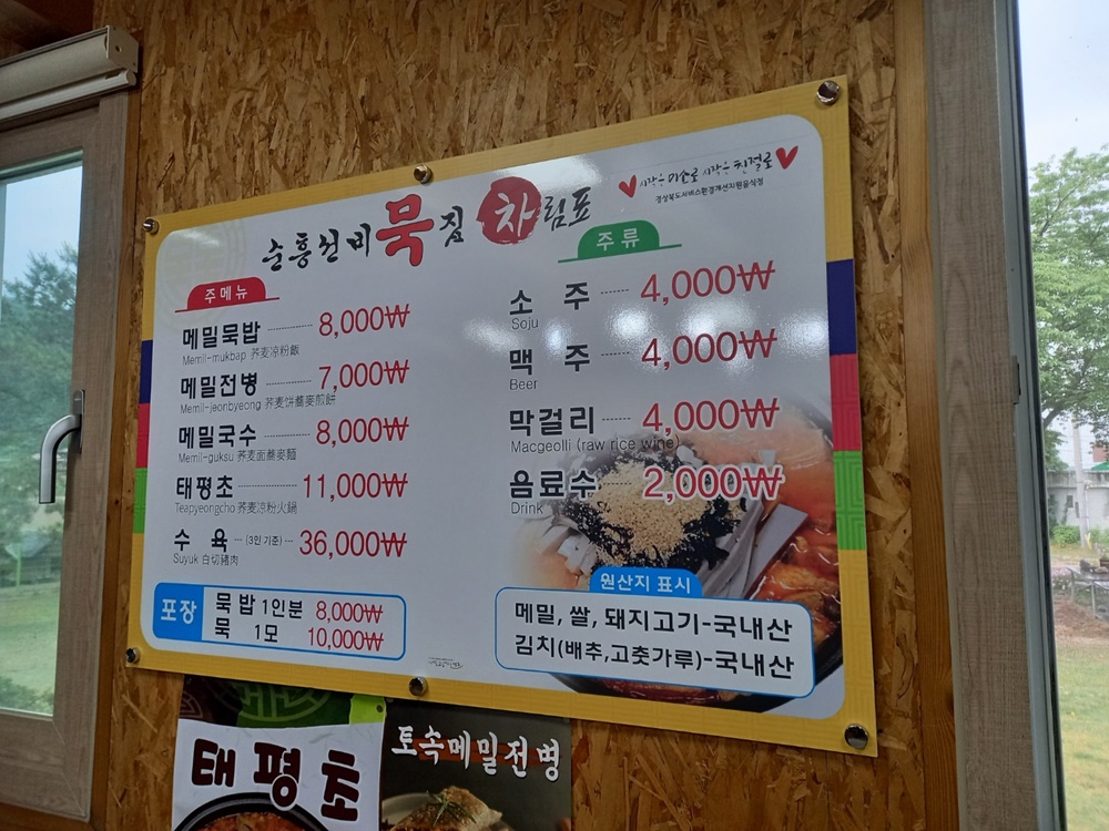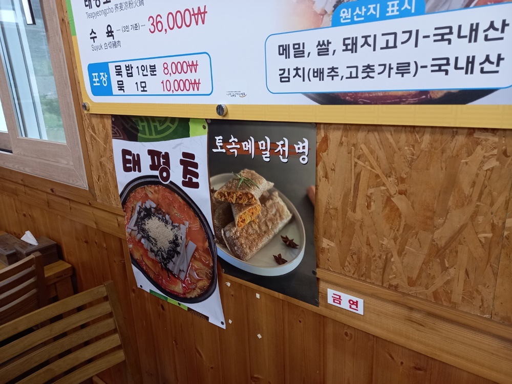 메뉴: 메밀묵밥, 전병, 국수,태평초