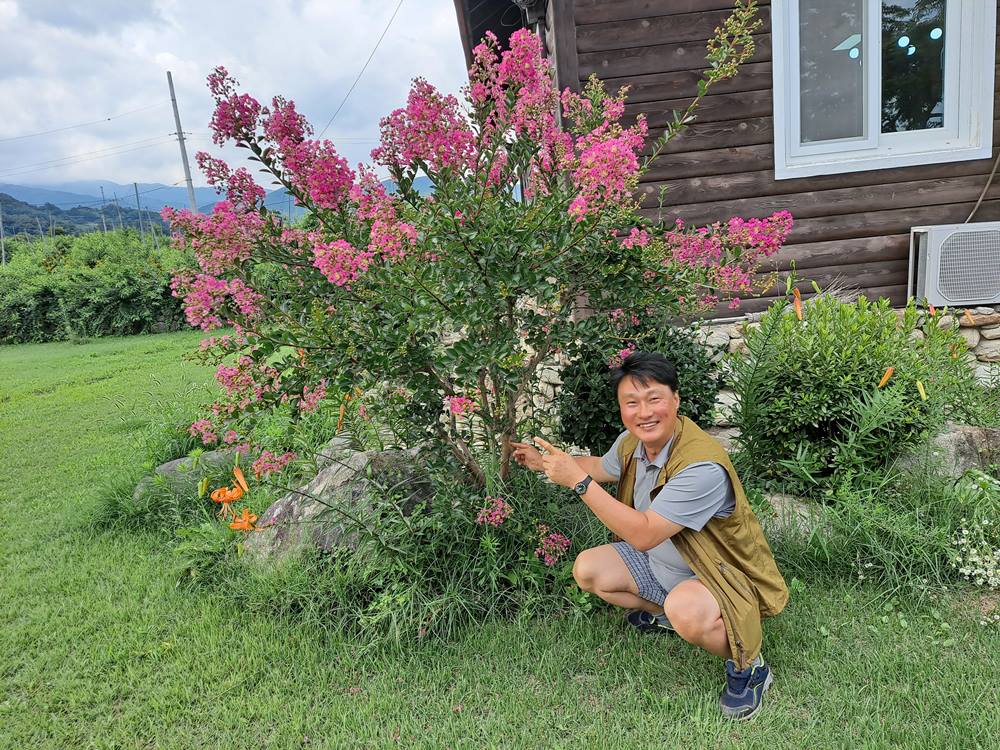 마당에 예쁘게 활짝 핀 '웃는 나무' 배롱나무를 간지르니 행복이 따로 없네요 ^^