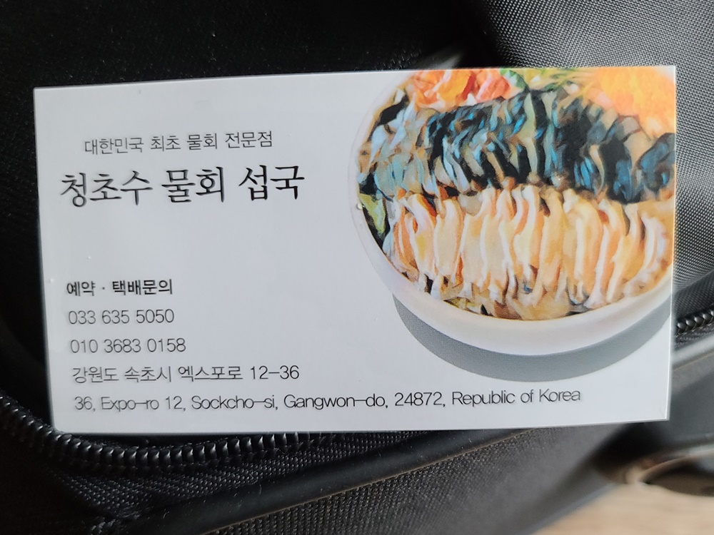 ♬속초 물회 섭국 맛집 청초수 물회 섭국♬ 속초 맛집 청초수 물회 섭국 *방문일자: 2022.7.12(화) *방문인원: 가족 청초수 물회 속초본점 강원도 속초시 조양동 1555-1 (엑스포로 12-36) 전화: 033-635-5050