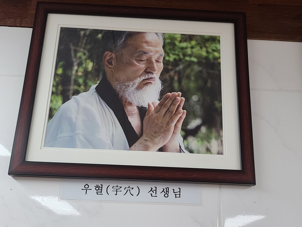 천우(天宇)선생(1870~1982)제자로 입문했다. 천우선생이 우혈선생을 제자로 받아들일 때가 세수 90세 였다. 천우선생은 쉽게 입문을 허락하지 않으셨다. 무려 6개월을 머문 끝에 입문 승낙을 얻어냈다. 어떤 질문이라도 하면 그날로 하산한다는 무문무답이 조건이었다. 그 후 무려 7년간 입을 닫고 무문무답 수행을 했는데 오직 실천과 경험만이 道의 경지에 이르게 한다는 가르침이었다. 질문과 대답은 도리어 수련에 방해가 된다는 것이었다. 시간이 지나면서 무문무답의 이유를 깨닫게 되었다. 말로 아는 것은 아는 것이 아니고, 몸으로 알아야 제대로 아는 것이다. 道는 결코 말이나 글로 터득할 수 없다는 것이다. 선생님은 무려 17년간 천우선생에게서 혈기도를 사사받았고 스승이 등선한 뒤에 하산해서 3년여 동안 전국 명산들을 두루 돌아 다니시며 수행하고, 1985년부터 전국의 명산대첩을 주유하면서 수행을 해 오시다가 주위의 권유로 1995년부터 본격적으로 혈기도를 펼치게 되었다.