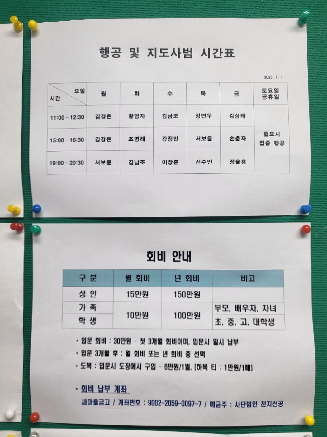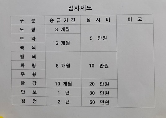 승급을 심사받으려는 도반들 명단